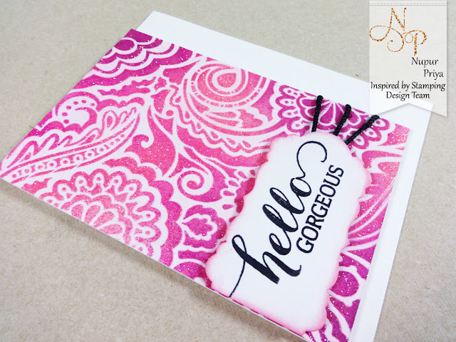 Mowed Lawn, Wild Honey, Salty Ocean, Festive Berries & Aged Mahogany Distress Inks, Black Archival Ink, Versamark Ink, Ranger Gold embossing powder, Spellbinders Valiant Honor Die, Ebosser, Ranger Heat-it Tool, Martha Stewart scoreboard, white & watercolor cardstock, Koi Waterbrush, red Viva Decor Pearl Pen & pearls.